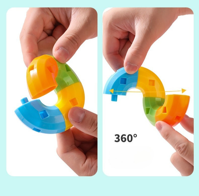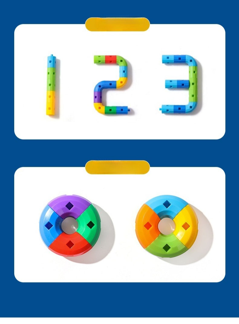 - Interlocking pieces feature 360-degree rotation for flexible building.