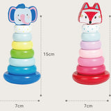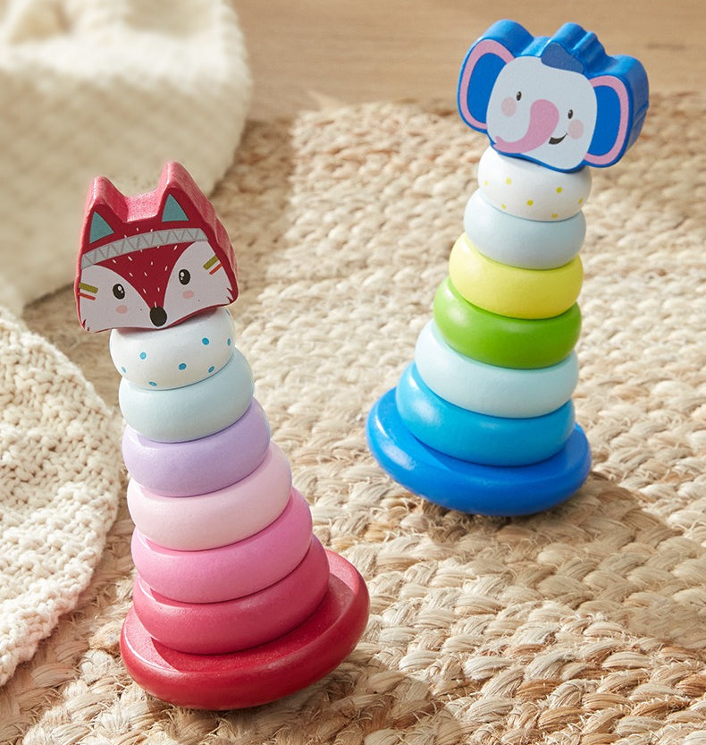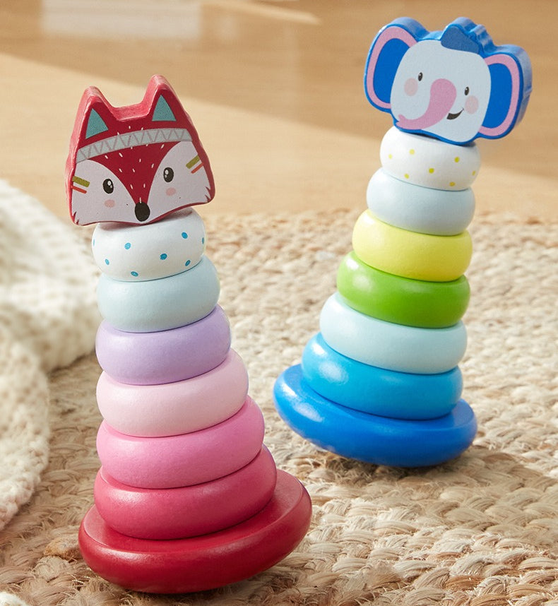 Wooden Animal Rainbow Stacking Tower & Wobble Toy