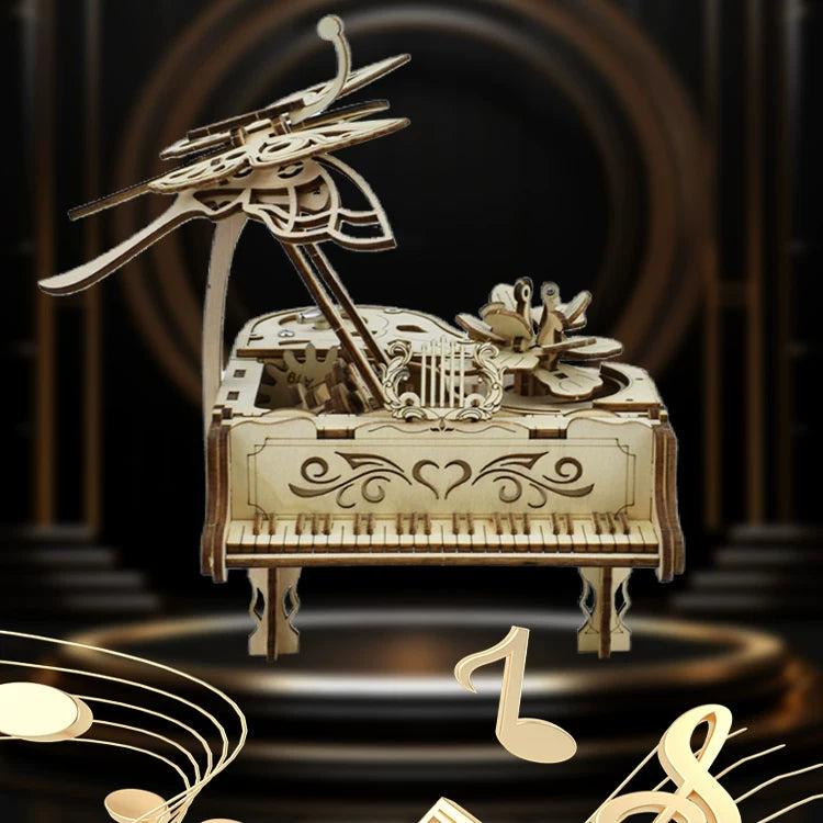 DIY assembly: Construct the piano model from precision-cut wooden pieces using the provided diagrams and video guide.