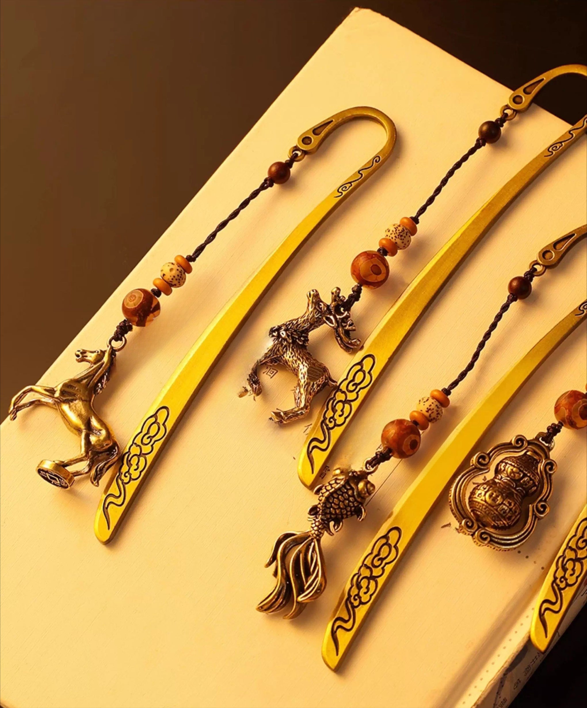 Chinese Style Brass Bookmark with Tassel