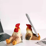 Hand-Carved Wooden Rooster Phone Stand