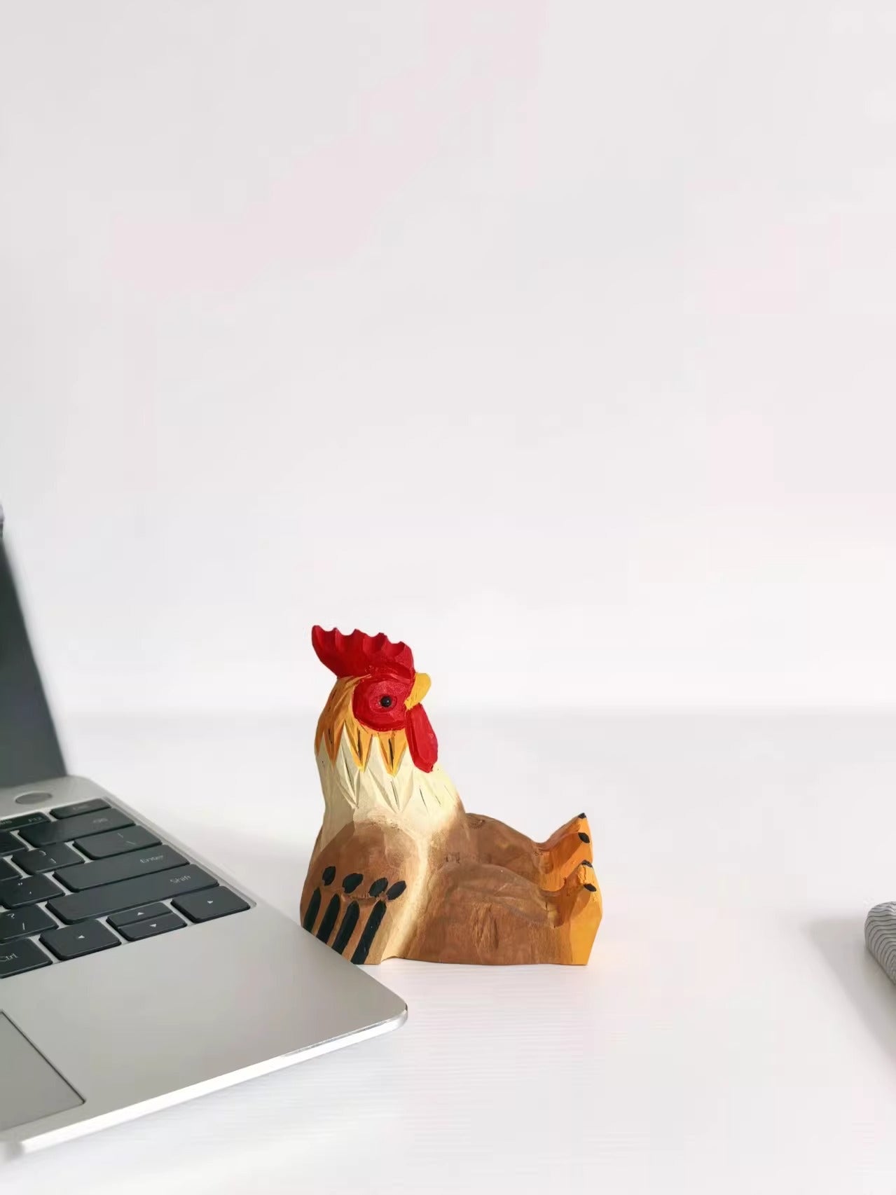 This desktop ornament is meticulously hand-carved from natural basswood to resemble a rooster, serving as both a charming figurine and a stable stand for your mobile device. Its artisanal quality brings a warm, organic feel to any workspace or bedside table.