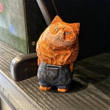Hand-Carved Wooden Cat Desktop Ornament