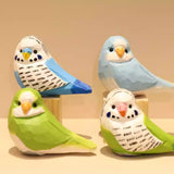 Hand-Carved Wooden Budgie and Monk Parakeet Figurine