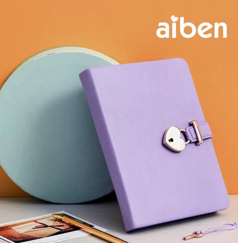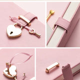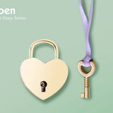 A private writing set featuring a soft-cover notebook secured by a distinctive heart-shaped metal lock and key. Accompanied by a matching metal ballpoint pen, this set offers a secure and elegant space for personal reflections and daily notes.