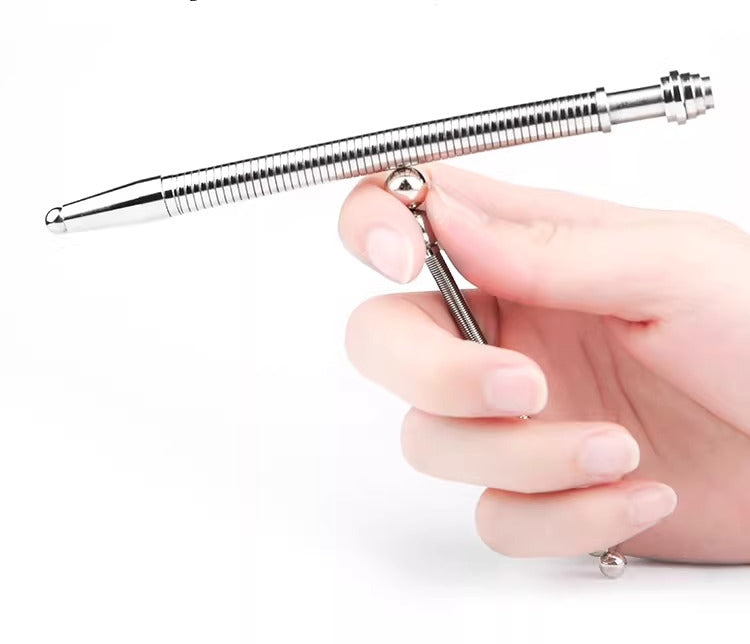 This metal writing tool doubles as a discreet way to keep your hands busy while you focus. Featuring a flexible spring loop and sliding beads, it helps pass the time during long meetings or study sessions.