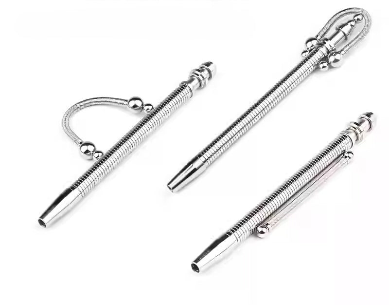 • Features a flexible spring loop attached to the barrel, equipped with sliding metal beads for tactile interaction.