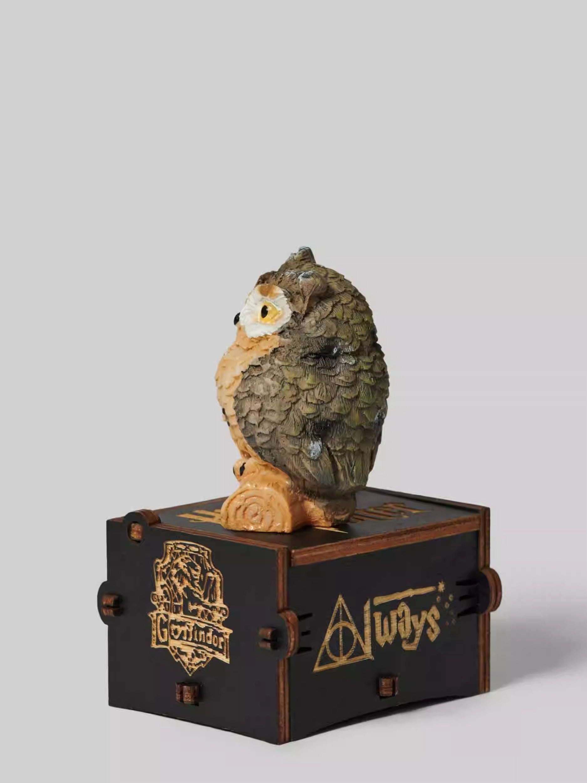 • Features a small owl figurine standing approximately 6cm tall on the lid.