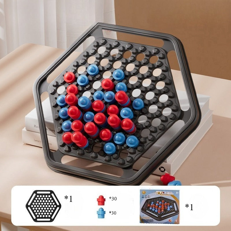 • What's in the Box: 1 x Hexagonal Game Base, 30 x Red Playing Pieces, 30 x Blue Playing Pieces.