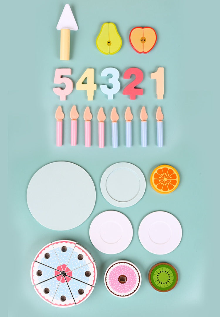 • Satisfying Slicing: The cake segments connect with velcro, making a satisfying "crunch" sound when cut with the wooden server—a fun way to build hand strength and coordination.