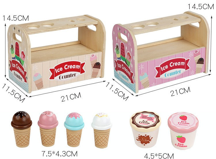 • 1 x Portable Wooden Ice Cream Counter ($21\text{cm} \times 11.5\text{cm} \times 14.5\text{cm}$)