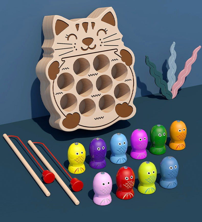 The 'Cat’s Catch' Wooden Magnetic Fishing Game | Montessori Learning Toy