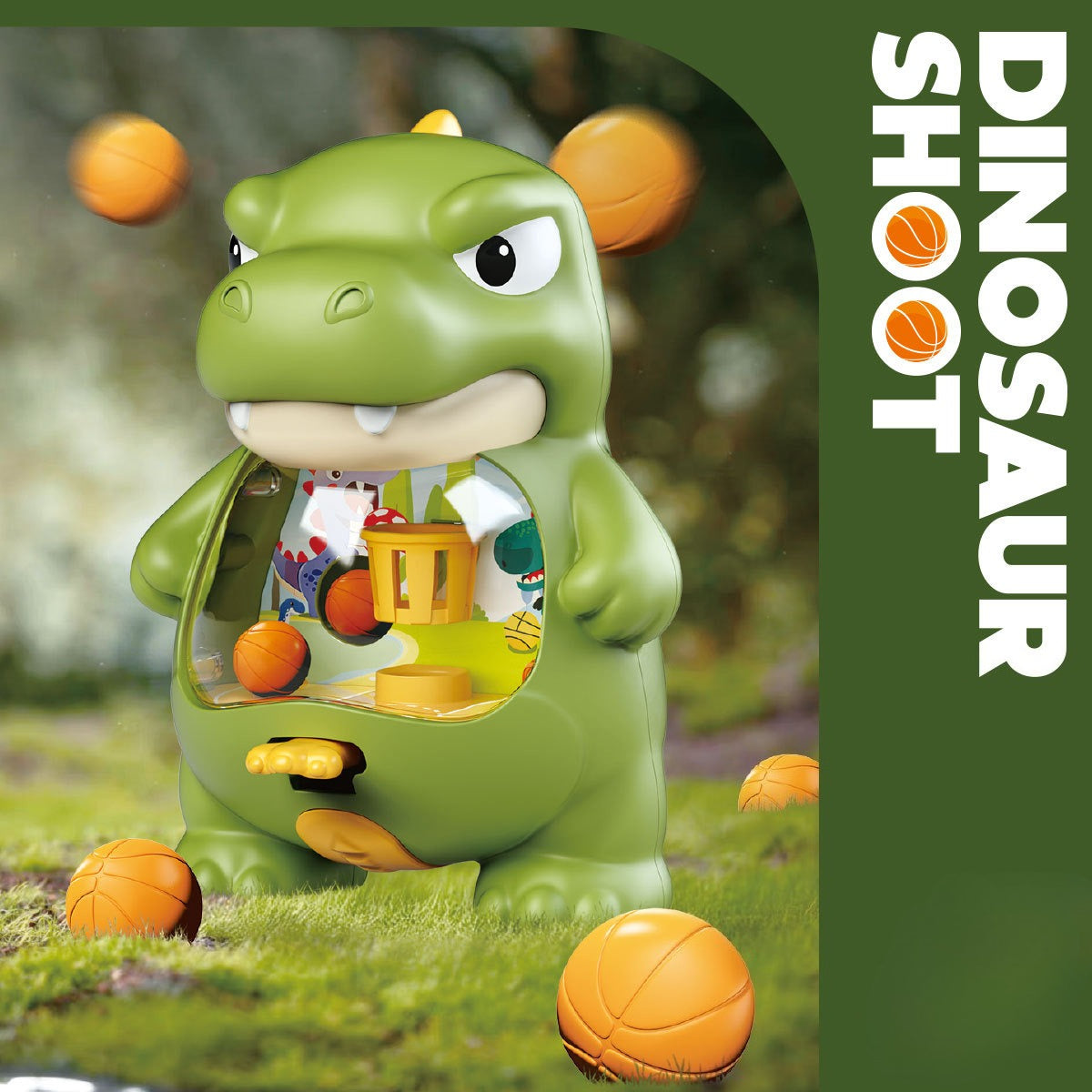 1 x Spring-loaded Dinosaur Basketball Unit (Available in Moss Green or Sunset Orange)
