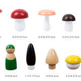 What's Included: 13 pieces total (various mushroom shapes and two wooden 'forager' figures).