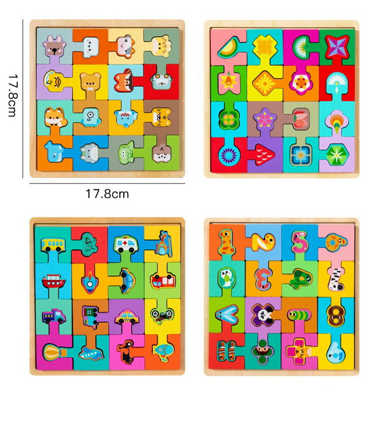 Forget standard jigsaw pieces—these clever wooden blocks connect using specific geometric shapes. Your little one has to match the square tab to the square hole or the triangle to the triangle to complete the picture, adding a fun logic twist to puzzle time.