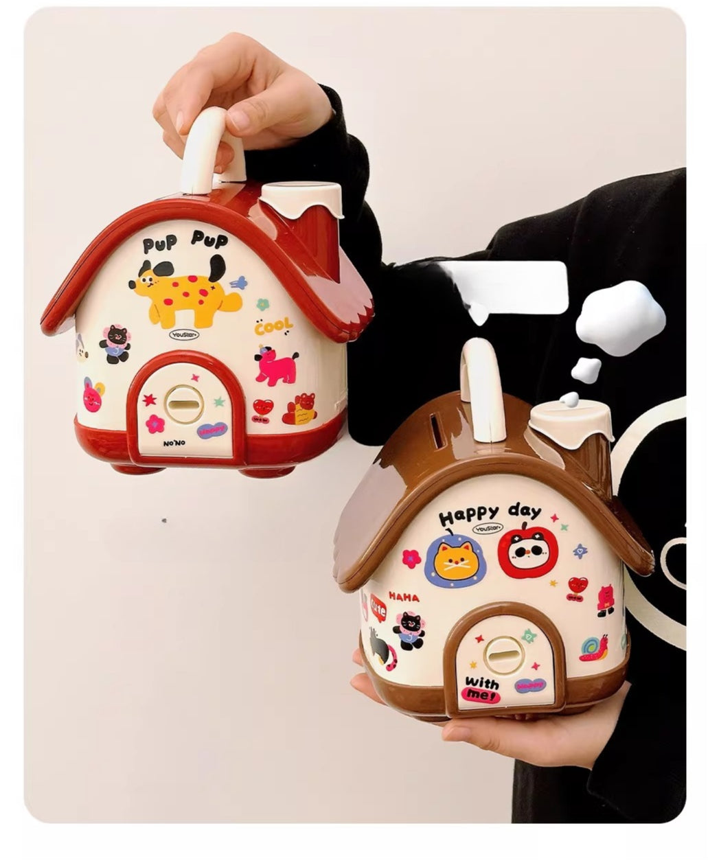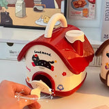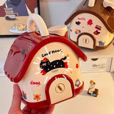 Shaped like a storybook cottage, this delightful money bank makes saving fun. It serves as both a secure spot for coins and bills and a playful decoration for a bedroom or study desk.