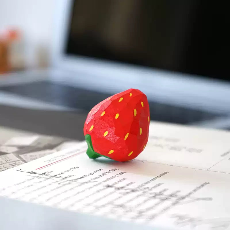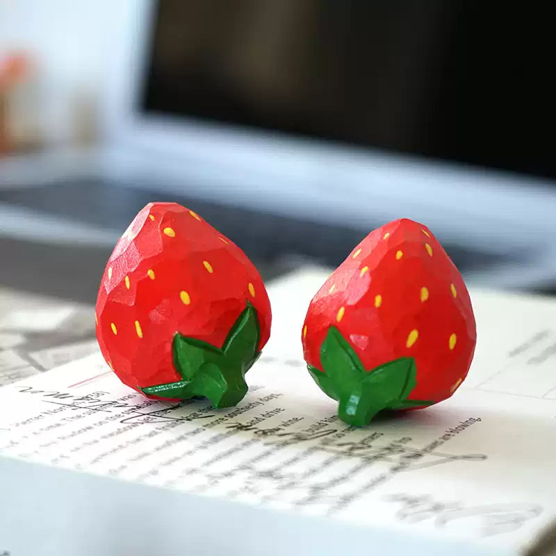 Hand-Carved Wooden Mini Strawberry