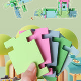 - Includes 74 interlocking pieces in 14 unique shapes and 5 gentle, bright colors.