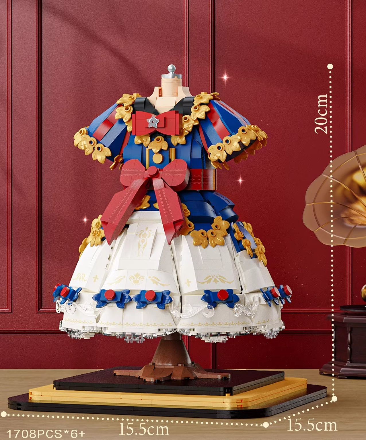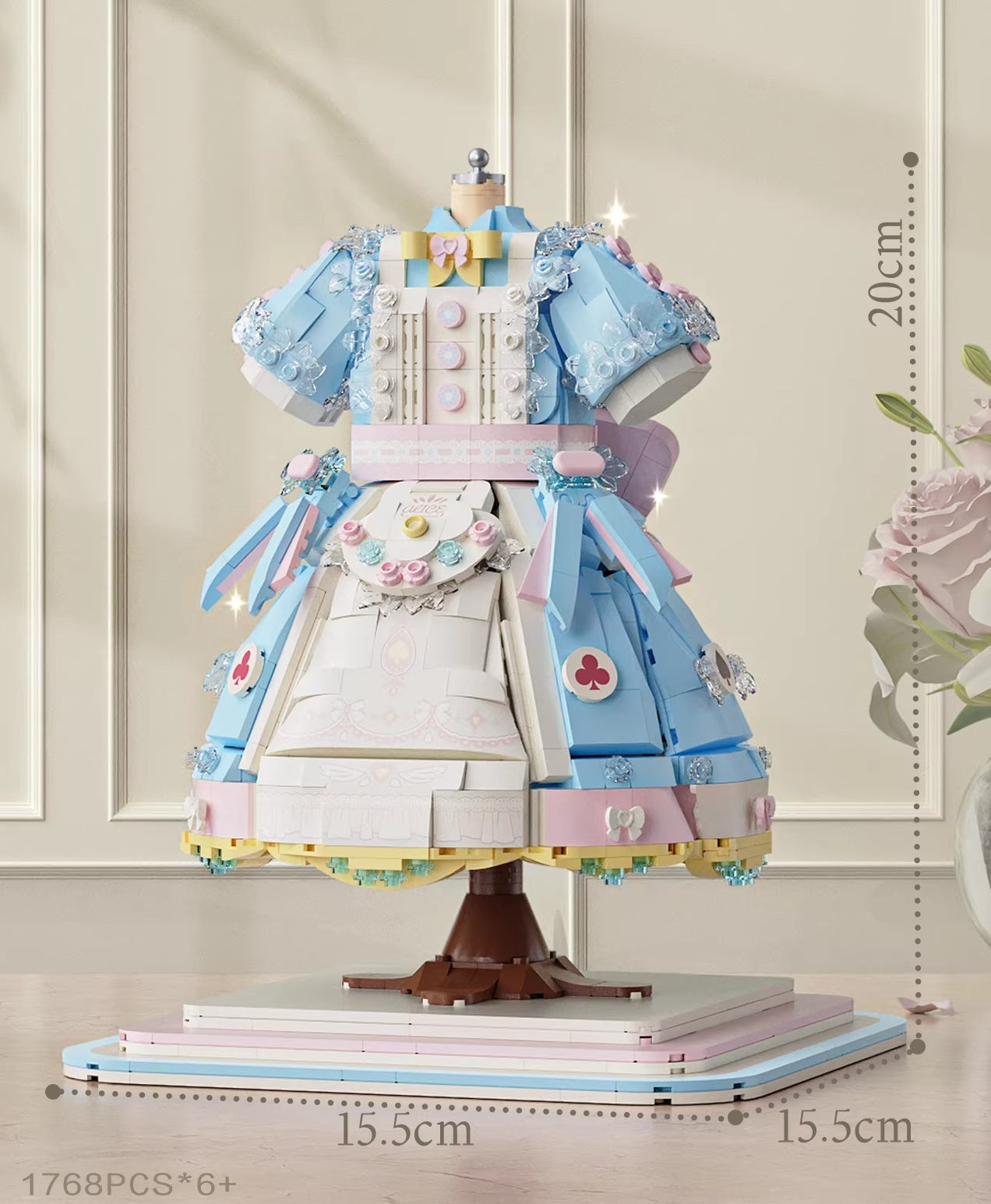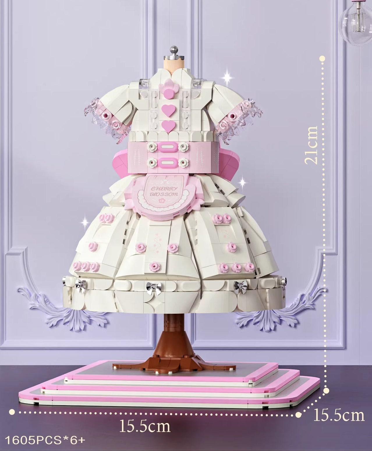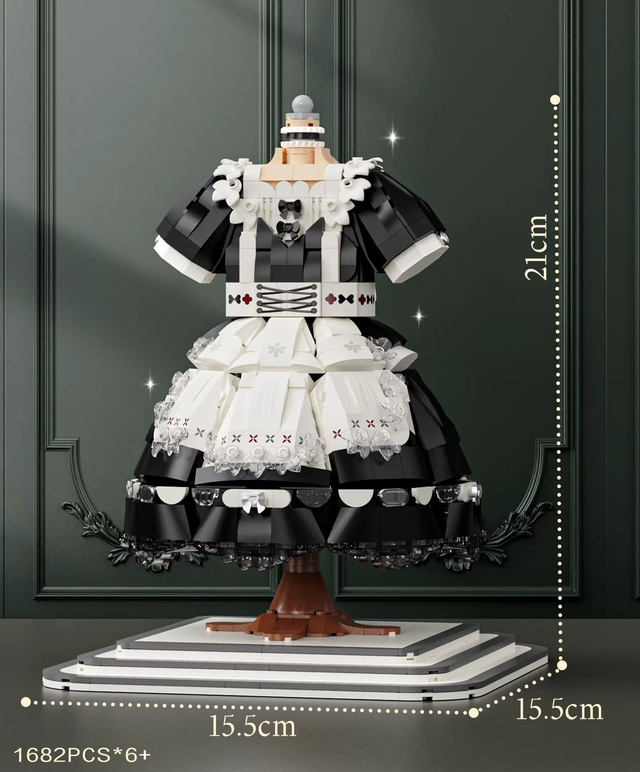 Ruffle layers, bow details, lace textures — all rendered in micro-blocks you snap together piece by piece. This Lolita princess dress building set ends as a desk ornament that actually looks like it belongs there, not like a kid left it behind.