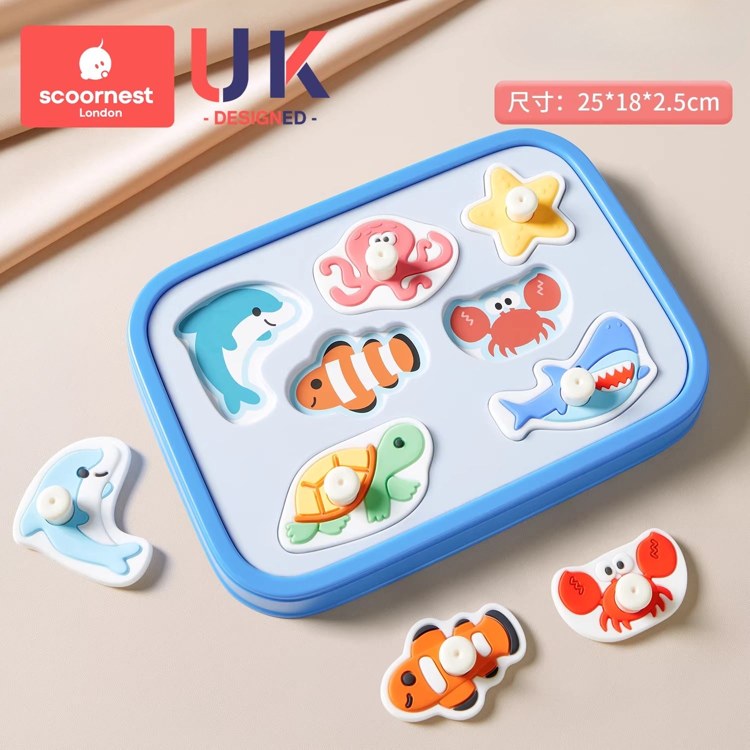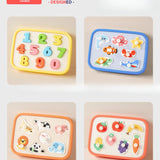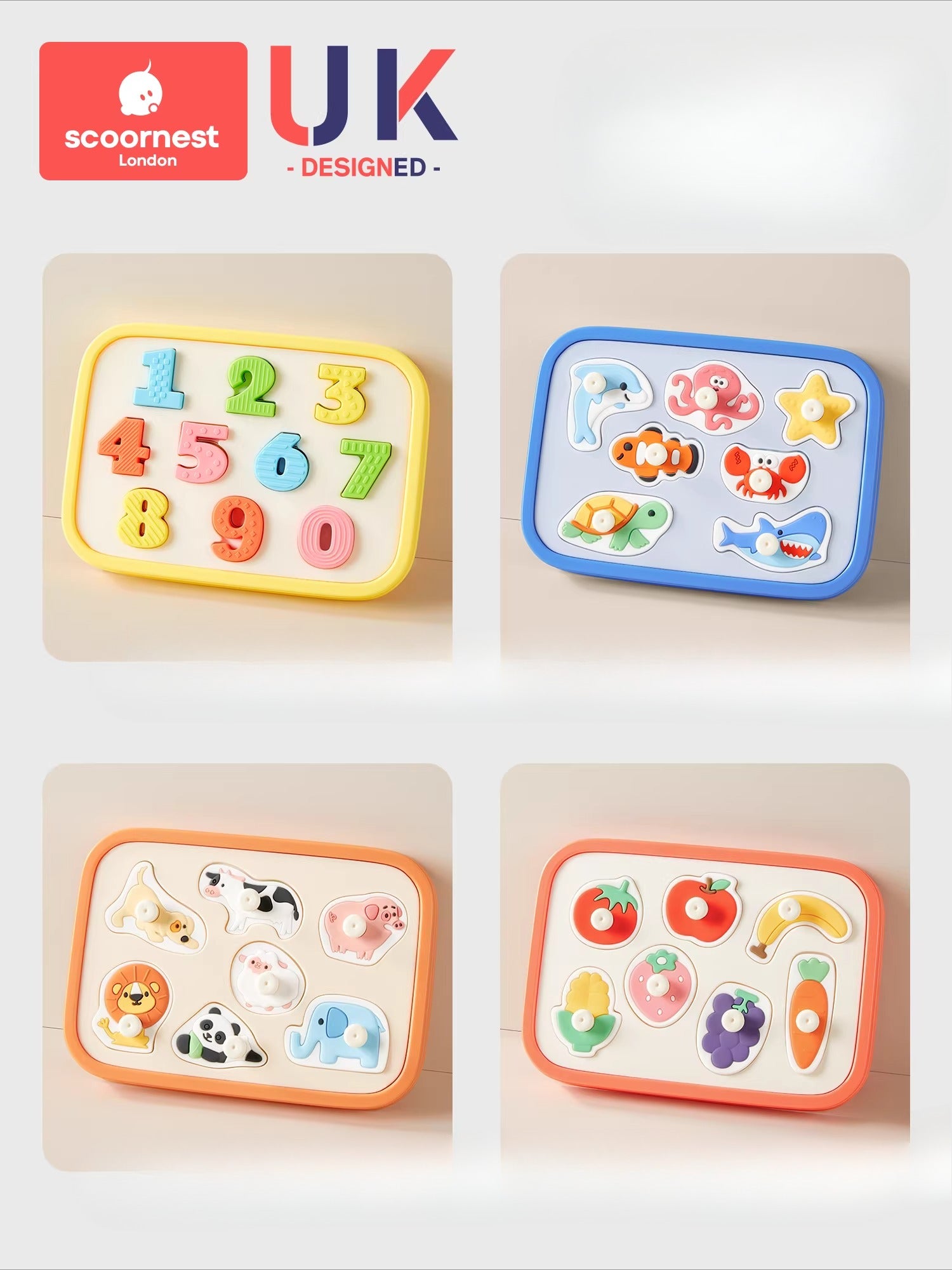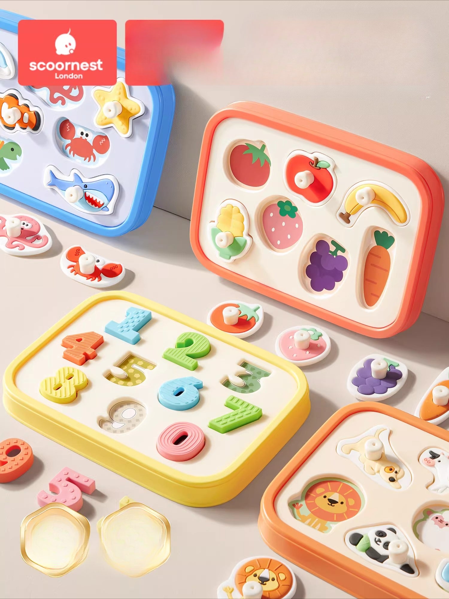 Easy grip design: The raised puzzle pieces are sized perfectly for small hands to pick up and manipulate.