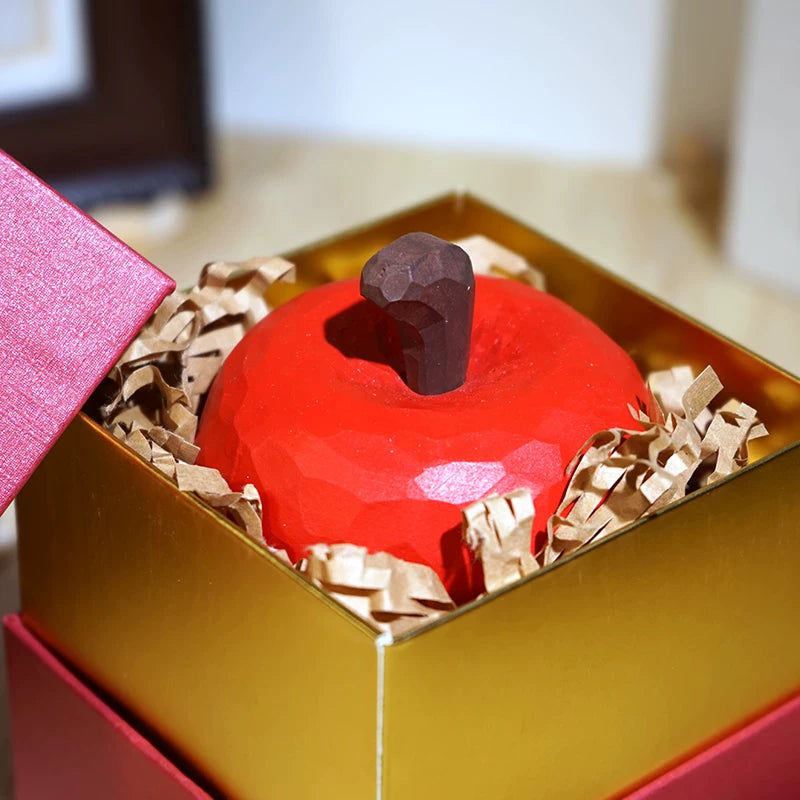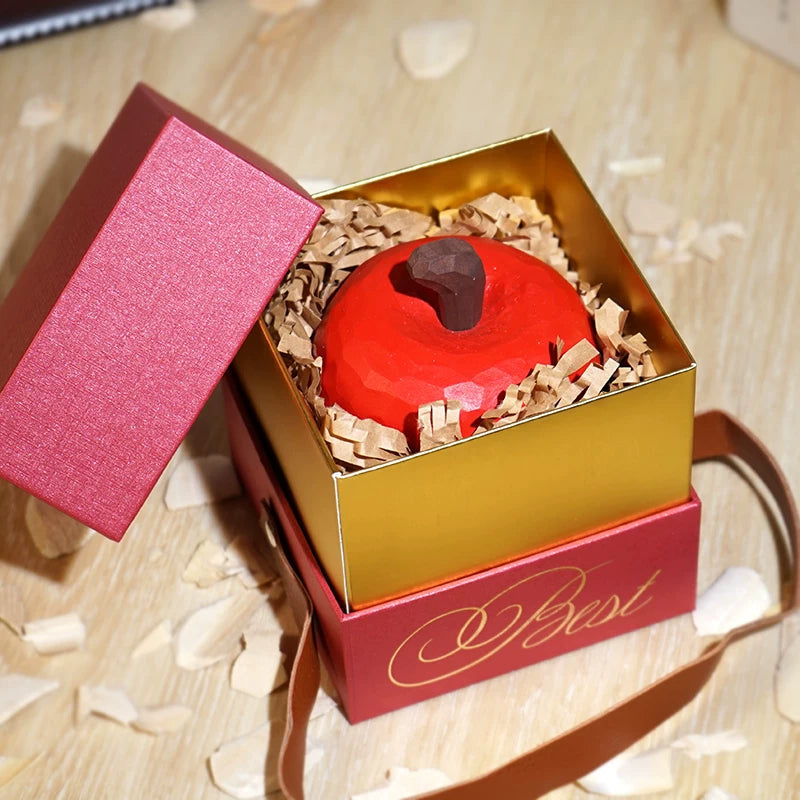 This hand-carved wooden apple features a vibrant red finish and a faceted texture that showcases its natural material. It serves as a gentle reminder of peace and well-being, making it a thoughtful token for a friend or family member's desk.